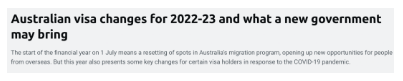 澳洲已经正式迎来了新财年。7月1日起,新的政策、新的法规、新的福利全都正式实施啦。移民这边也传来了好消息。这是澳洲联邦大选之后的**个新财年,又正值疫情后“抢人”的阶段,澳洲移民方面也有大变化!